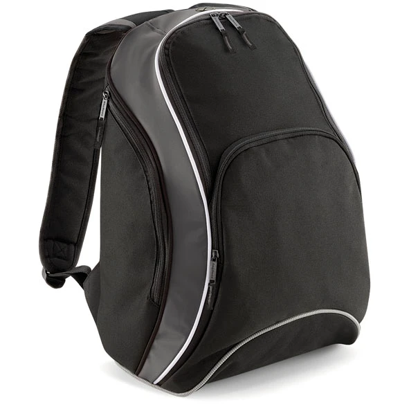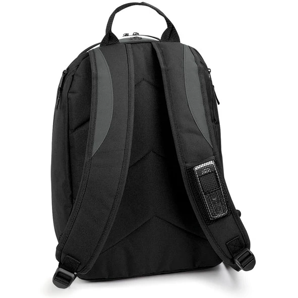 Material: 600D/420D Polyester combination; Dimensions: 32 x 45 x 23 cm; Capacity: 21 litres; Media pocket & headphone port, enhanced visibility reflective piping, water bottle pocket, zippered front pocket, zippered side pockets, internal mesh pocket, padded back panel, padded adjustable shoulder straps, grab handle