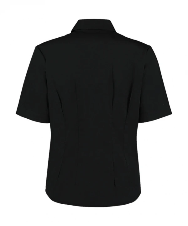 120 gsm • 57 % cotton, 40 % polyester, 3 % lycra • easy care short sleeve blouse • slightly reinforced collar • tone-in-tone buttons • front and back darts for a fitted waist • curved hem.