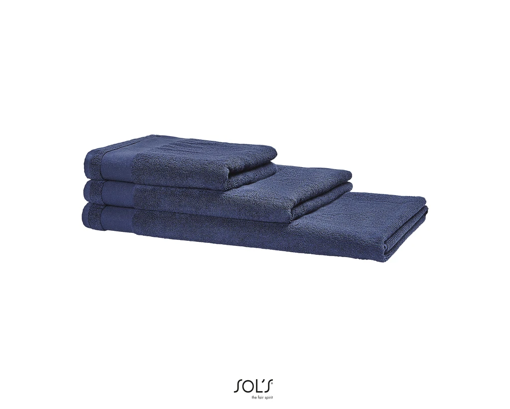 QUALITY: FRENCH TERRY 100% combed cotton; Soft and fluffy French terry towelling, 2-thread loops for better absorbency, 6 cm smooth strip for customisation, Hanging loop; Size: 50 x 100 cm; Certificate: STANDARD 100 by OEKO-TEX®