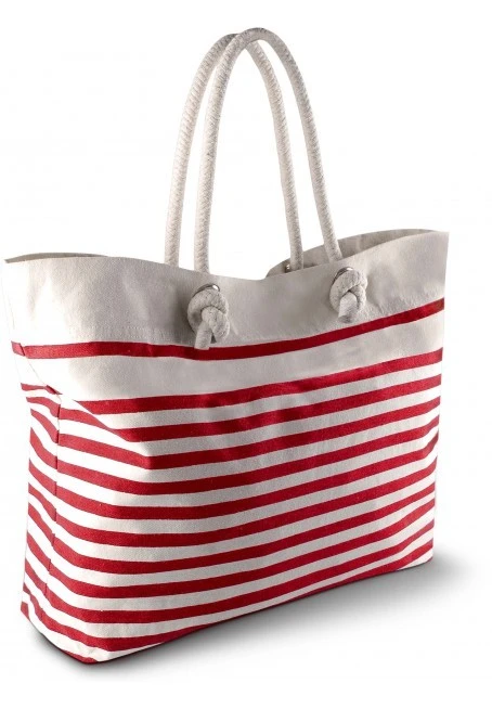 Large sailor-style beach bag in cotton canvas 310 gsm. Cotton rope handles, zipped inner pocket, press stud fastening. SBS zip. Dimensions: 42 x 36 x 13 cm