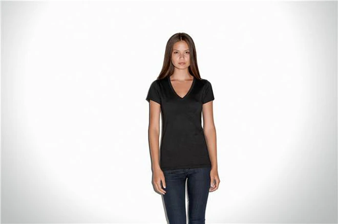 145gsm • 100% ring-spun, combed jersey cotton • deep V-neckline • longer body length • classic fit