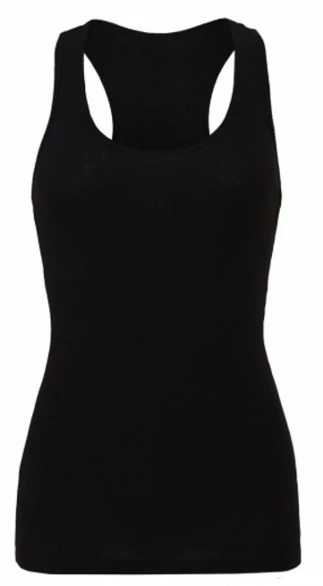 195 gsm • 100 % ring-spun combed cotton • preshrunk • 2 x 1 rib-knit • racerback (appearing like a wrestling shirt) • side seams • double-needle stitched waistband.