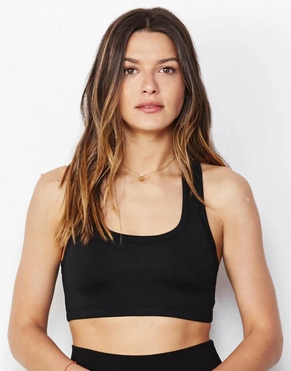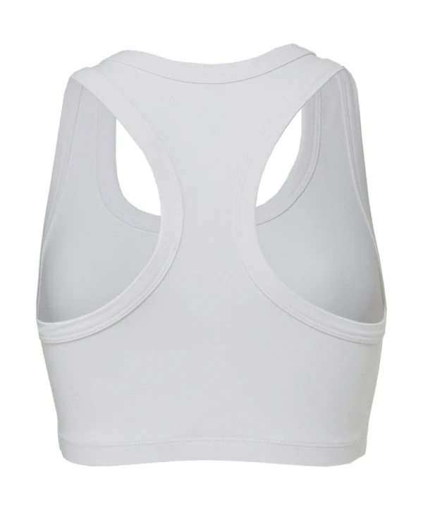 225 gsm • 90 % nylon 10 % spandex • racerback bra • two layers to firm bra • trim to neckline and shoulder/sleeve seam.