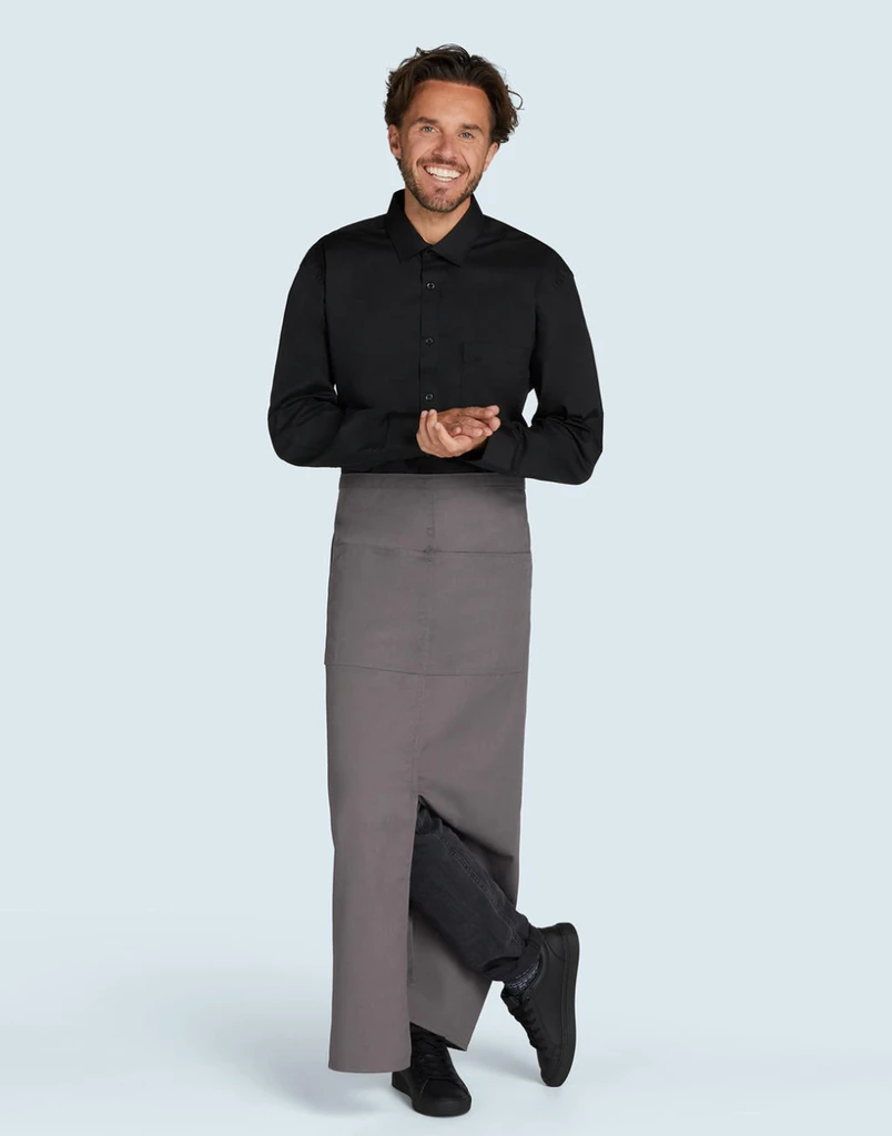The perfect companion for any Sommelier. The long front split allows for ample legroom and the double patch pocket is both practical and smart. Available in 8 classic colours, all washable at 60°, it will fit into any environment.