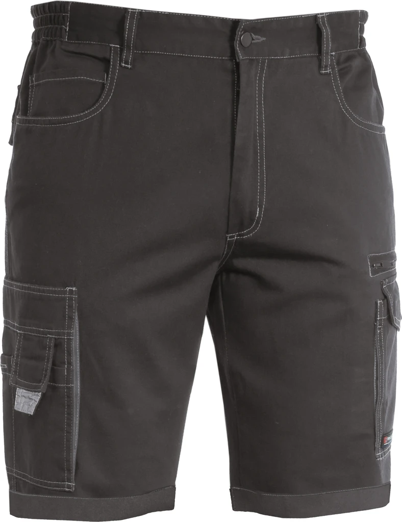 Bermuda shorts with side elastic and waist belt loops. Zip fastening with metal button, three jeans-style front pockets, one LOCK SYSTEM side pocket and one zip pocket, one multi-function pocket, two back pockets, one open and one with flap and Velcro. Contrasting inserts, reflective stripes on the back pocket