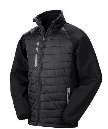 Material Body: 100% Polyester Filling: 160 g/m², Polyester, recycled (REPREVE ®); Lining: 100% Polyester Sleeves: 280 g/ m², 2-layer mechanical softshell yarn (printable); Sleeve outer: 40% Polyester, recycled (TOPGREEN®), 60% Polyester; Sleeve inner: 30% Polyeste