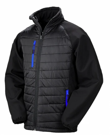 Material Body: 100% Polyester Filling: 160 g/m², Polyester, recycled (REPREVE ®); Lining: 100% Polyester Sleeves: 280 g/ m², 2-layer mechanical softshell yarn (printable); Sleeve outer: 40% Polyester, recycled (TOPGREEN®), 60% Polyester; Sleeve inner: 30% Polyeste