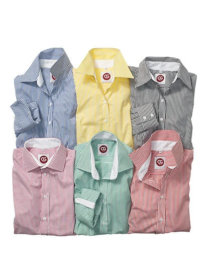 Stripes are always a theme in the fashion world, because they can be combined and varied in so many different ways. This is also true for business clothing. A striped blouse or shirt can, depending on the styling and colour, appear modern as well as casual or classic. Labico are further enhanced with a fresh touch through its white inner collar. The blouse is tailored with darts in the front and back and has rounded seams. 60° C washable, easy-care, colourfast, industrial laundering, finishing allowed.