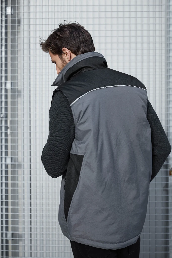 Outer: 100% polyamide Oxford PU coating. Inner: quilted polyester lining. Waterproof 3,000 mm. Full front zip. Adjustable hem. 3 front zipped pockets. 2 inside pockets. Fleece-lined neck. Reflective piping front and back. Reinforcing textured panels at shoulders and sides. Zip access for decoration at chest and hem.