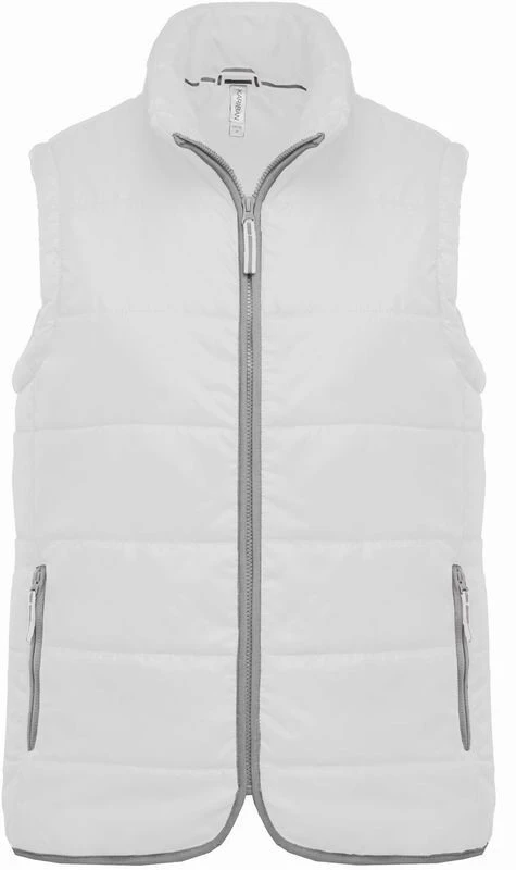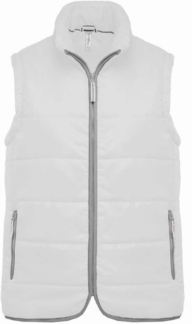 Outer: 100 % polyester ripstop with acrylic coating. Polyester inner padding. Polyester lining 210 T. Comfortable and modern. 2 zipped outer pockets. 1 inner pocket with tear release fastening. Grey contrasting zip and grey contrasting binding at front opening, pockets and hem. 1 zip at chest and 1 zip at hem for decoration access.