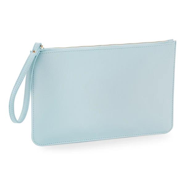 Material: 100% Leather-look PU; Dimensions: 26 x 17 cm; TearAway label for ease of rebranding, saffiano fine grain, multi-purpose use, high shine gold metal zip, zippered main compartment, internal foam padding, soft-touch lining, wristlet strap