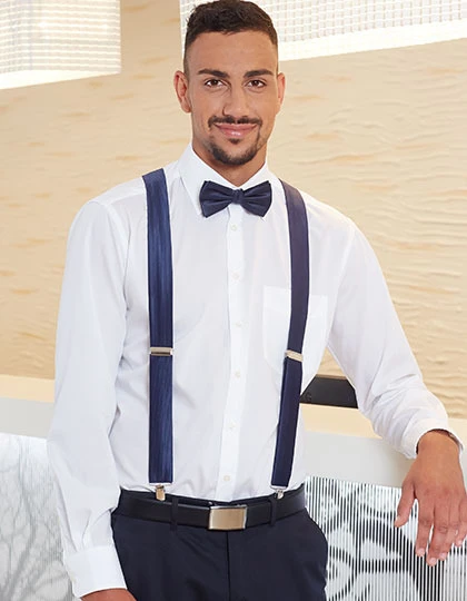 Braces made from tie fabric, with a light sheen and a thin stripe structure – an eye-catcher and a stylish accessory that provides an original and elegant finish for any outfit. Colour the perfect match for ties and bow ties. Length adjustable, width 3,5 cm.