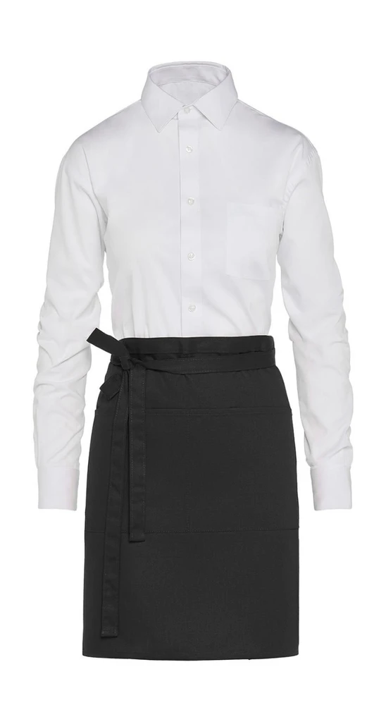 Our short bistro apron is now available with a large compartmentalized pocket, in 7 classic colours. It's poly-cotton fabric is easy-care and all colours are washable at 60°. With or without decoration, this style is a "NO BRAINER"!