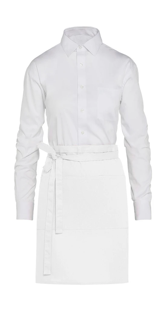 Our short bistro apron is now available with a large compartmentalized pocket, in 7 classic colours. It's poly-cotton fabric is easy-care and all colours are washable at 60°. With or without decoration, this style is a "NO BRAINER"!