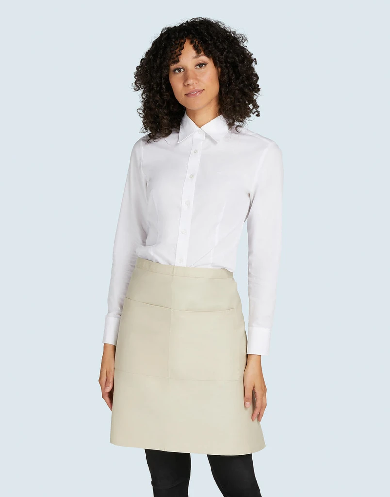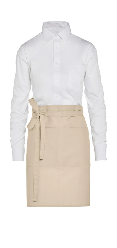 Looking for a more sustainable bistro apron ? Then look no further. This short bistro apron with pocket made of 65% RECYCLED pre-consumer polyester and 35% RECYCLED post-consumer cotton (GRS certified) so it's a truly conscious choice. It's available in 7 colours, all washable at 60° and colourfast.