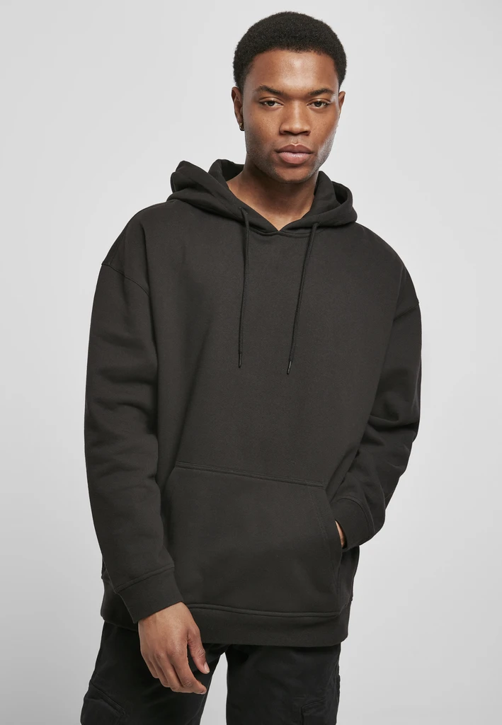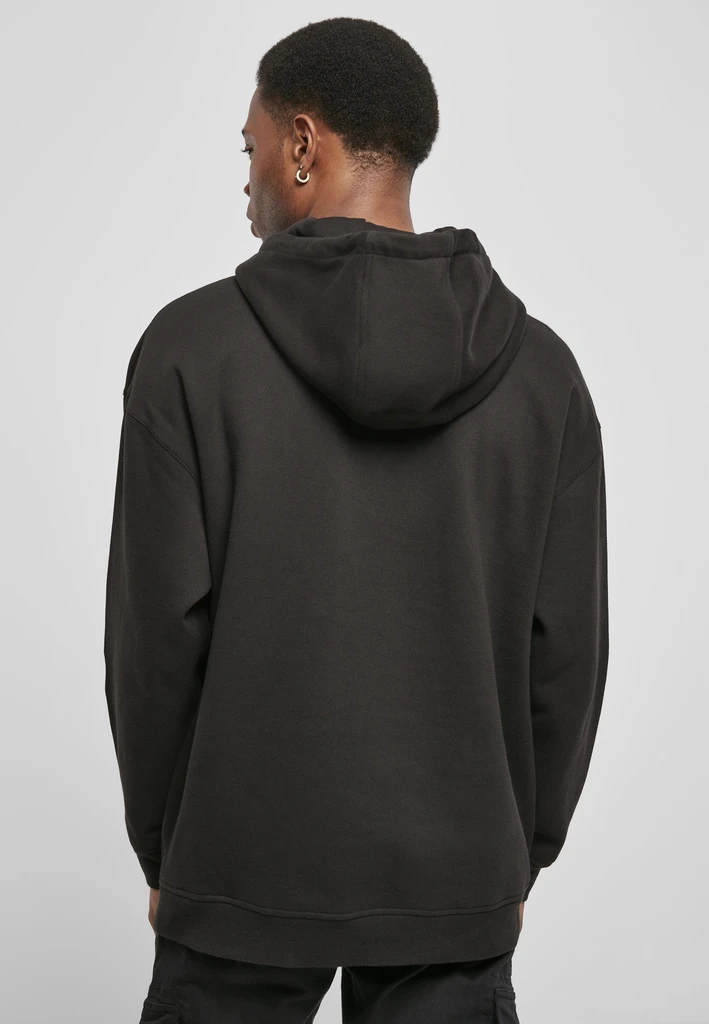 Hood can be adjusted using drawstrings trimmed with bands at the ends