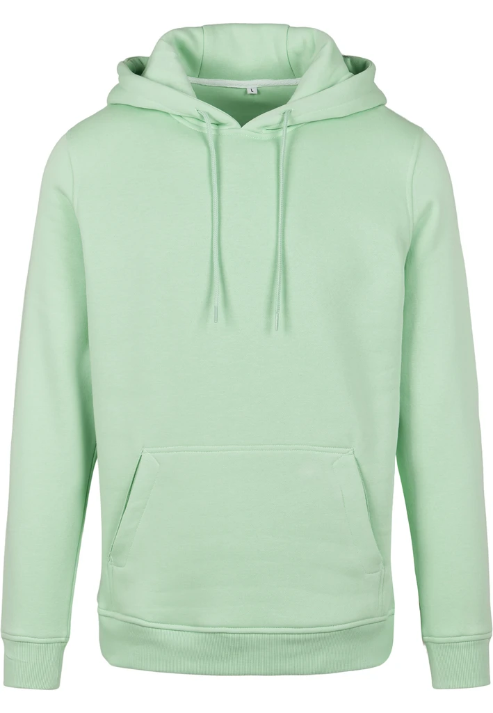 Composition: 65% Cotton, 35% Polyester; 300gsm; Roughened fabric on the inside, flat kangaroo pockets with outer fabric at the top, half moon neck, hood with two dividing seams, halterneck, outer fabric lined hood