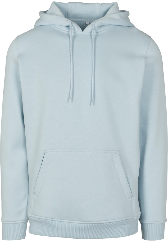 Composition: 65% Cotton, 35% Polyester; 300gsm; Roughened fabric on the inside, flat kangaroo pockets with outer fabric at the top, half moon neck, hood with two dividing seams, halterneck, outer fabric lined hood
