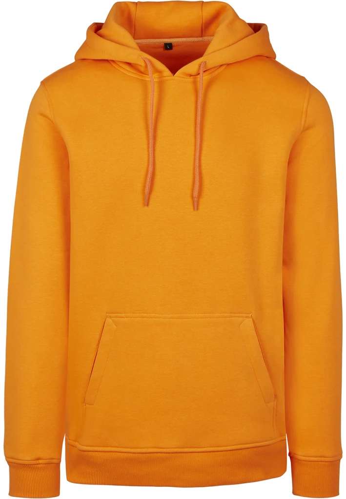 Composition: 65% Cotton, 35% Polyester; 300gsm; Roughened fabric on the inside, flat kangaroo pockets with outer fabric at the top, half moon neck, hood with two dividing seams, halterneck, outer fabric lined hood