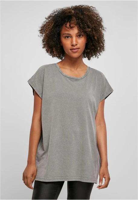 Ladies Acid Washed Extended Shoulder Tee