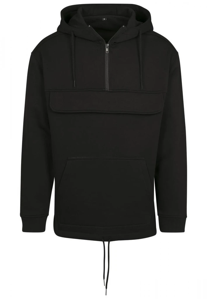 Composition: 65% Cotton / 35% Polyester; 300gsm; Roughened sweat fabric on the inside, ribbed cuffs at the sleeves, hemline with drawstring, chest pocket with velcro and concealed zipper, flat kangaroo pocket with outer fabric pocket openings, hood with drawstrings