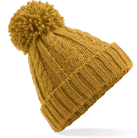 TearAway label for ease of rebranding, heavyweight melange cable knit, self-coloured pom pom, hand-knitted feel, Suprafleece® thermal band, cuffed design for optimal decoration, available in Junior (B480b) and Infant (B480a) sizes