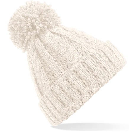 TearAway label for ease of rebranding, heavyweight melange cable knit, self-coloured pom pom, hand-knitted feel, Suprafleece® thermal band, cuffed design for optimal decoration, available in Junior (B480b) and Infant (B480a) sizes