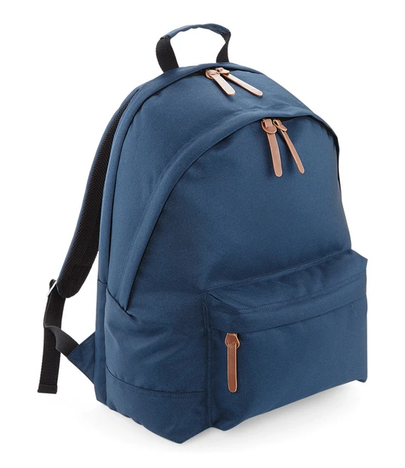 TearAway label for ease of rebranding, heritage styling, laptop compatible up to 15.6", external access padded laptop compartment, authentic PU and metal accents, zippered front pocket, padded back panel, padded adjustable mesh shoulder straps, padded grab handle