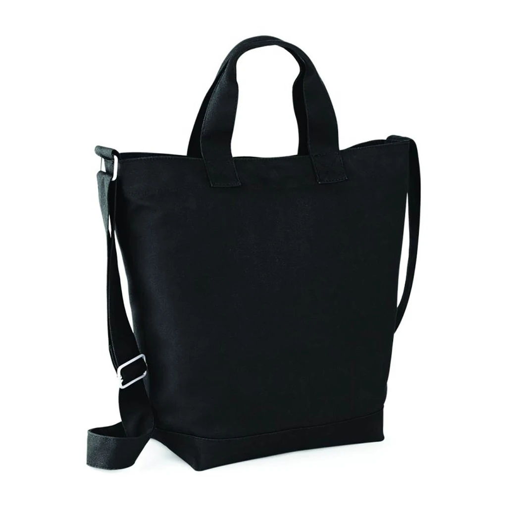 Material: 100% Cotton Canvas; Weight: 407gsm; Capacity: 15 litres; Handle length: 37 cm; Dimensions: 38 x 40 x 14 cm; Adjustable self fabric shoulder strap, unisex styling, internal valuables pocket, press stud closure