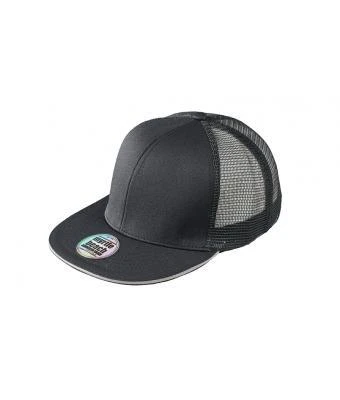 Hip shape 'High Profile', Flat peak with sticker and 6 decorative stitching lines, 6 panels, Laminated front panels, Pleasant to wear due to padded sweatband, Size-adjustment by 'click & snap' fastener