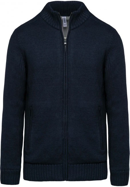Outer: 50 % cotton / 50 % acrylic. Inner: 100 % polyester microfleece. Polyester sleeve lining and padding. Warm and comfortable. 2 zipped pockets and front zip fastening. 2 x 2 rib on shoulders, sides and sleeves. 2 x 2 lined rib at neck, cuffs and hem. Inner side invisible zipper for decoration access at side or back.