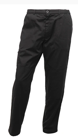 Hardwearing fabric, water repellent coating, part elasticated waist with belt loops, metal button and zip fly opening, reinforced crotch seam, 2 front pockets, side cargo pocket, 2 rear pockets, side leg ruler pocket, D-ring attachment, hammer loop, reinforced seams with triple stitching; Available in short (310.17) leg lengths