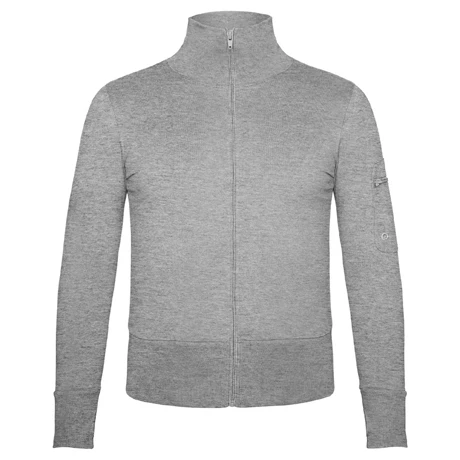Casual turtleneck jacket with central zipper to fabric tone. Collar, cuffs and wide waist 1x1 rib. Pocket on top of sleeve with zip and output for mobile devices. Reinforced covered seams in the neck. Selvedge side seams and cuff with thumb hole.