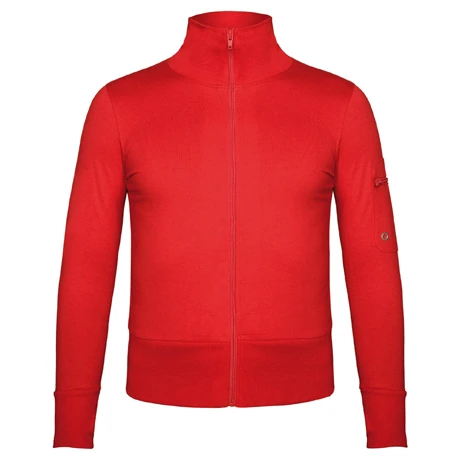 Casual turtleneck jacket with central zipper to fabric tone. Collar, cuffs and wide waist 1x1 rib. Pocket on top of sleeve with zip and output for mobile devices. Reinforced covered seams in the neck. Selvedge side seams and cuff with thumb hole.