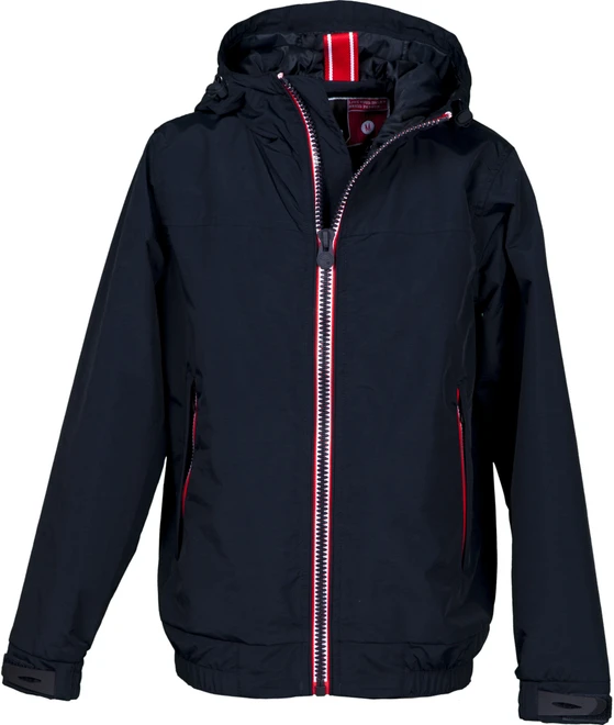 Children’s/boy’s lightweight jacket with 8 mm contrasting zip, shaped hood with two seams and drawstring, elasticated waist, elasticated and adjustable cuffs, two outer pockets with concealed zip. Unpadded, mesh lining, one inner zip pocket with opening for smartphone headphones, zip on the back and chest for easier printing and embroidery
