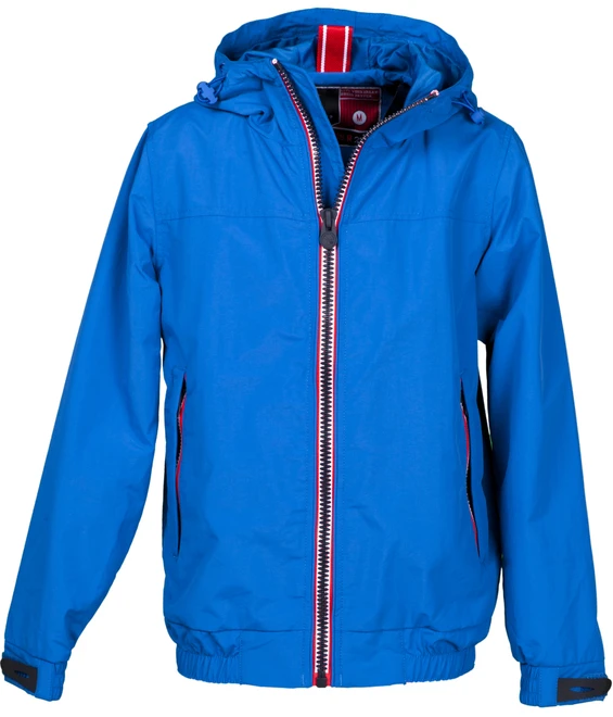 Children’s/boy’s lightweight jacket with 8 mm contrasting zip, shaped hood with two seams and drawstring, elasticated waist, elasticated and adjustable cuffs, two outer pockets with concealed zip. Unpadded, mesh lining, one inner zip pocket with opening for smartphone headphones, zip on the back and chest for easier printing and embroidery