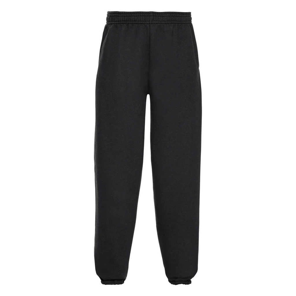 Weight: 295gsm; Material: 50% Combed Ringspun Cotton; 50% Polyester; Elasticated waistband and leg ends. Side pockets. No drawcord in line with health and safety legislation; Certificates: STANDARD 100 by OEKO-TEX®