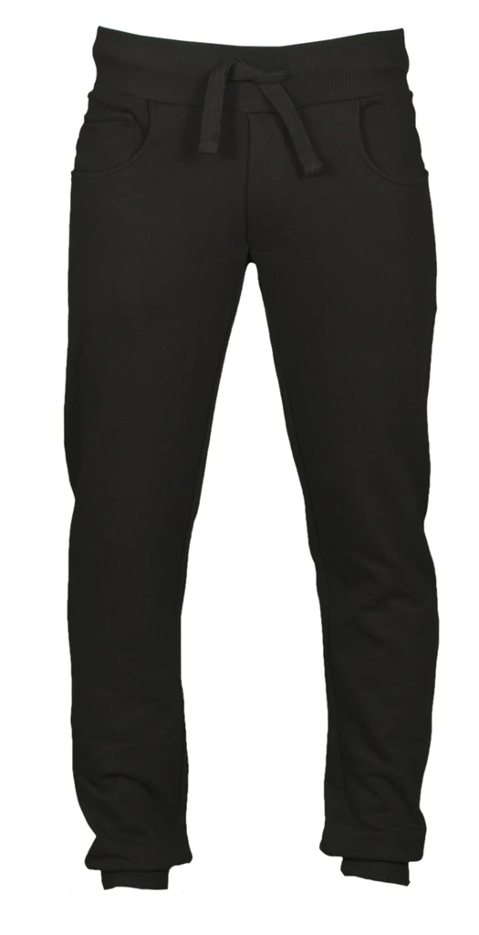Children’s all-season sweatpants with stretch rib at the waist and bottom of the leg, drawstring, two front pockets and a small pocket, zip fly fastening