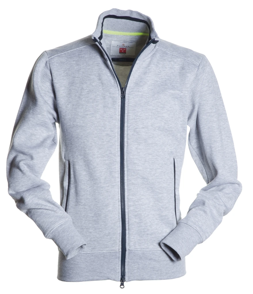 Children’s sweatshirt with full, contrasting coloured plastic SBS zip with double metal pull; rib collar with contrasting trim, side pockets with contrasting trim, fitted sleeves, two outer pockets with contrasting zip, stretch rib cuffs and hem, reinforced seams