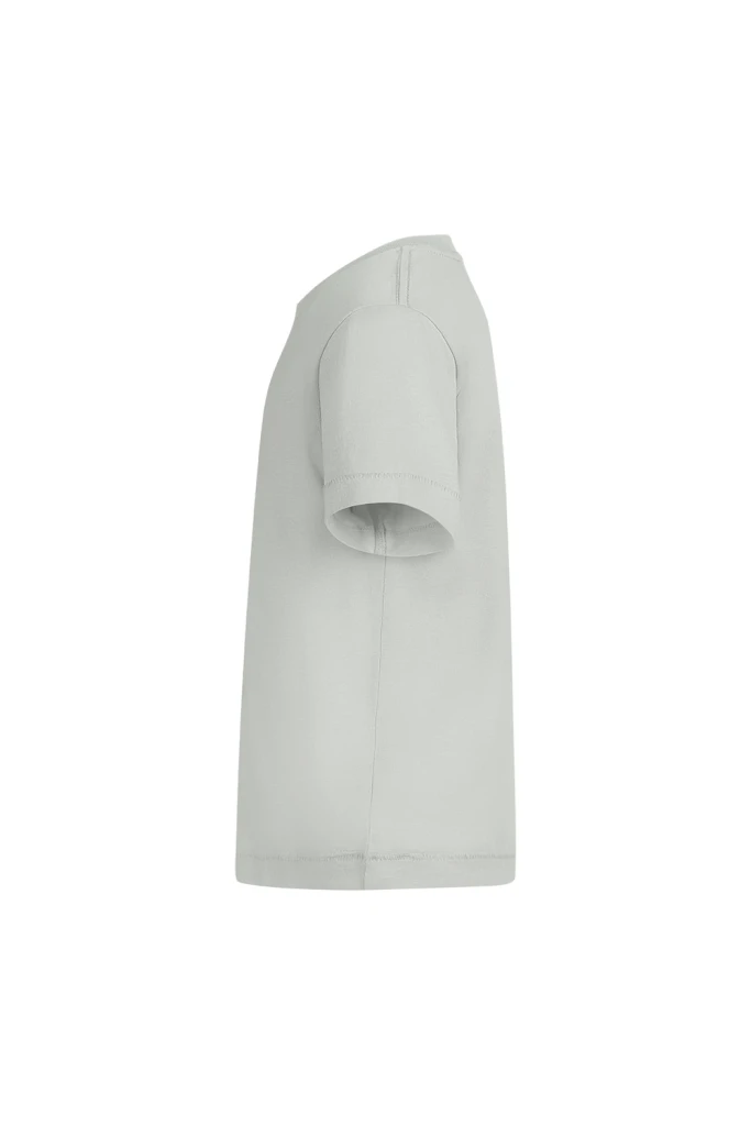 KIDS´ short sleeve T-shirt. Single Jersey. 100% Organic RingSpun Cotton. 165 g/m². Ribbed knit round neck 1x1 Reinforced shoulder to shouldere neck tape to avoid deformation Side seams Soft touch No brand label in neckline Unisex sizes: COAST Women´s sizes: COAST WOMAN