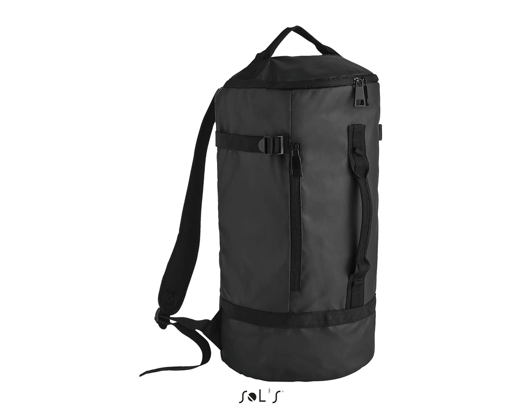 QUALITY: COATED 600D - 100% polyester - PU coating; Large top opening with double slider, adjustable padded shoulder straps, reinforced carry handles, side straps,1 front zip pocket, 1 inside zip pocket, padded back for added comfort, padded top and base; Capacity: 28 Litres; Size: 27 x 50 x 27 cm