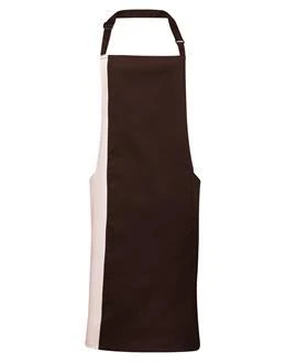 A classic full bib Apron with a contrast coloured panel appearing along the length of the right hand side. Featuring two slanted pockets to the side.