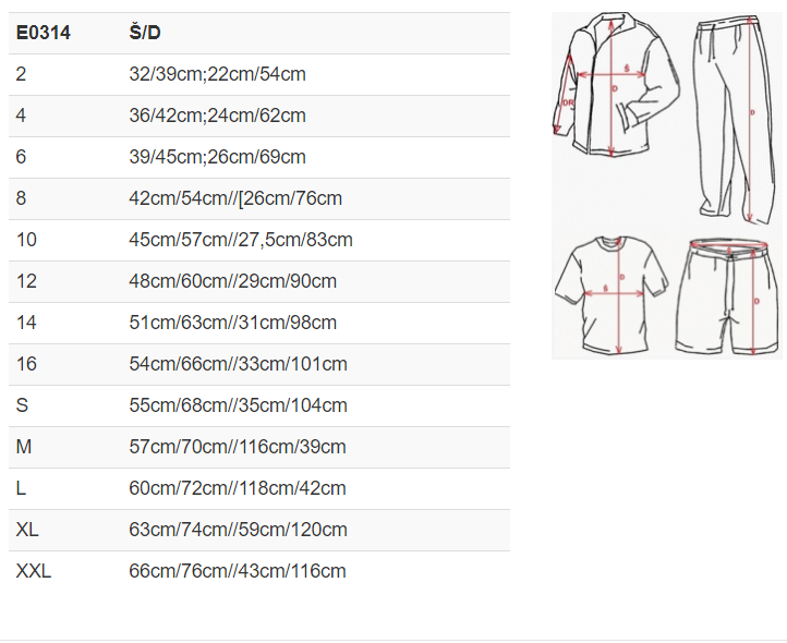 | Velikost extra | 2, 4, 6, 8, 10, 12, 16 |