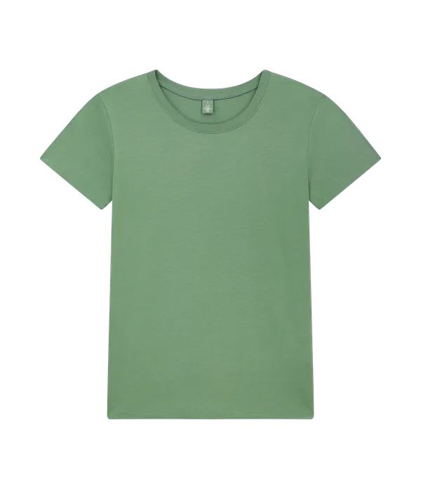 The fabric delivers a smooth, soft hand feel with a refined drape. Designed for comfort and understated style, the T-shirt features a clean neckline finished with a single stitch detail for a polished look. The relaxed silhouette allows for natural movement, making it a versatile choice for everyday wear.