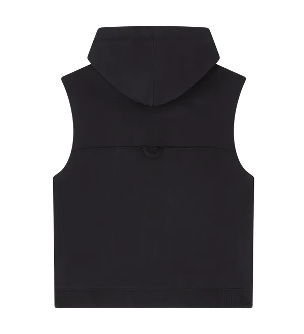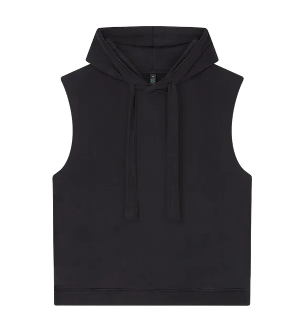 Constructed from 100% organic cotton and finished with a soft sueded texture, the fabric delivers a premium hand feel with everyday comfort. Design details include a modern sleeveless cut, a practical side pocket, and a bold drawstring feature that adds a statement finish.