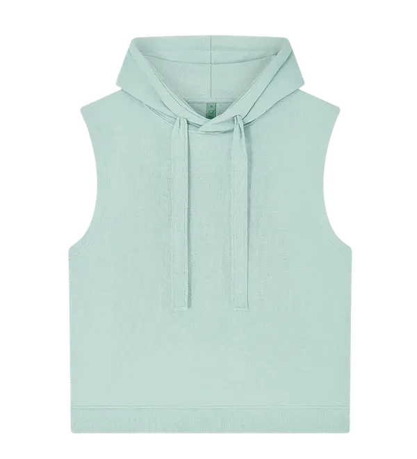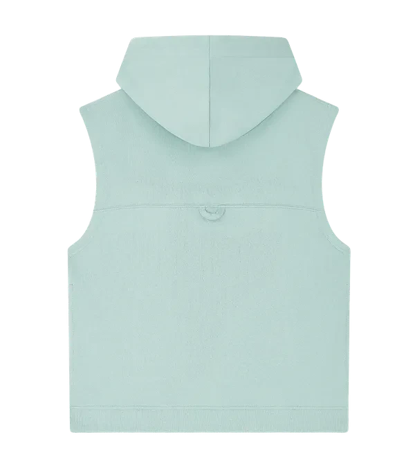 Constructed from 100% organic cotton and finished with a soft sueded texture, the fabric delivers a premium hand feel with everyday comfort. Design details include a modern sleeveless cut, a practical side pocket, and a bold drawstring feature that adds a statement finish.