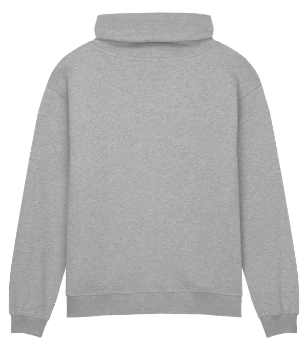 Crafted from substantial 300 gsm organic cotton, the fabric is finished with a soft sueded surface for an enhanced premium feel. The distinctive funnel neckline provides added warmth while maintaining a structured, fashion-led appearance.