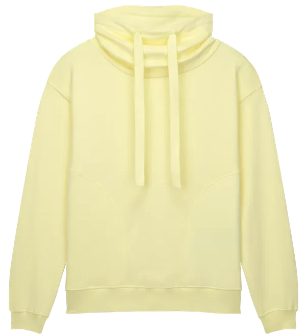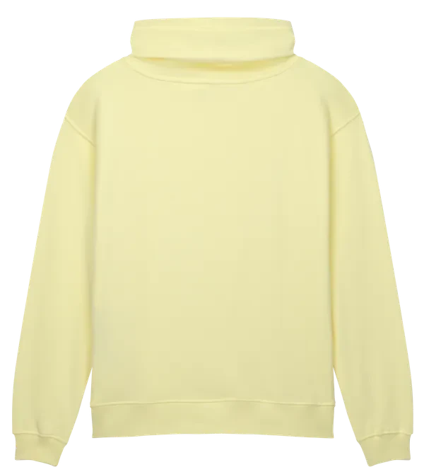 Crafted from substantial 300 gsm organic cotton, the fabric is finished with a soft sueded surface for an enhanced premium feel. The distinctive funnel neckline provides added warmth while maintaining a structured, fashion-led appearance.