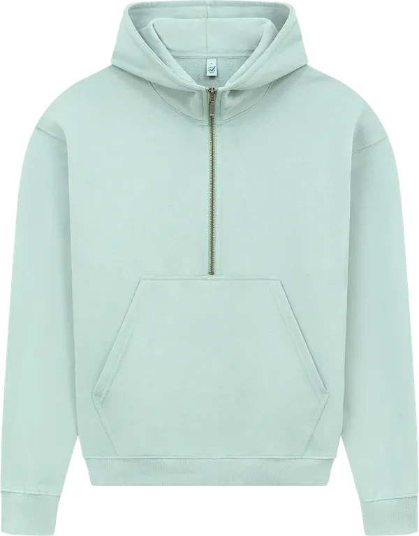 EP314-SUSLGRCrafted from 300 gsm brushed-back fleece, this style delivers a soft, substantial feel. The high-neck hood and tonal black YKK half-zip fastening reinforce its modern, elevated look, while the kangaroo pocket and ribbed cuffs and hem maintain everyday functionality.