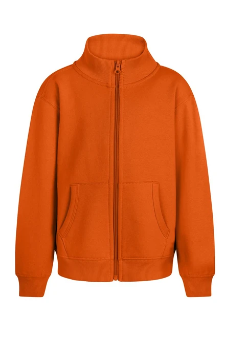 KIDS´ full zip sweatshirt. Brushed Fleece. 60% Cotton - 40% Polyester. 270 g/m² Brushed interior, soft comfortable and warm Nylon zipper Kangaroo pockets with fine binding finish and reinforced seams Non-deformable waistband and cuffs in Jersey fabric 2X1 with elastane Reinforced single jersey inner neck tape Unisex sizes:COOPER